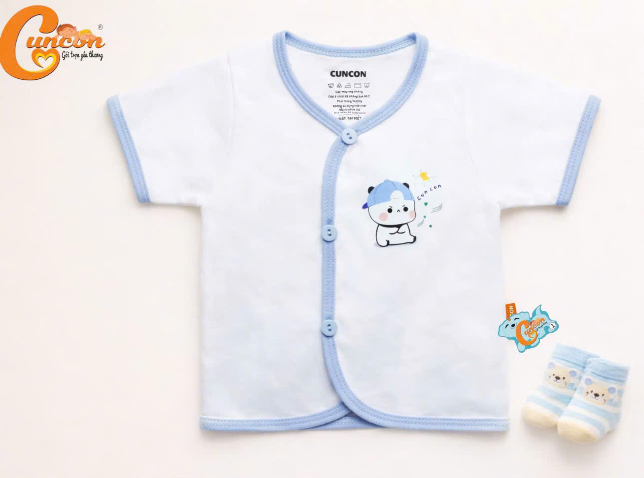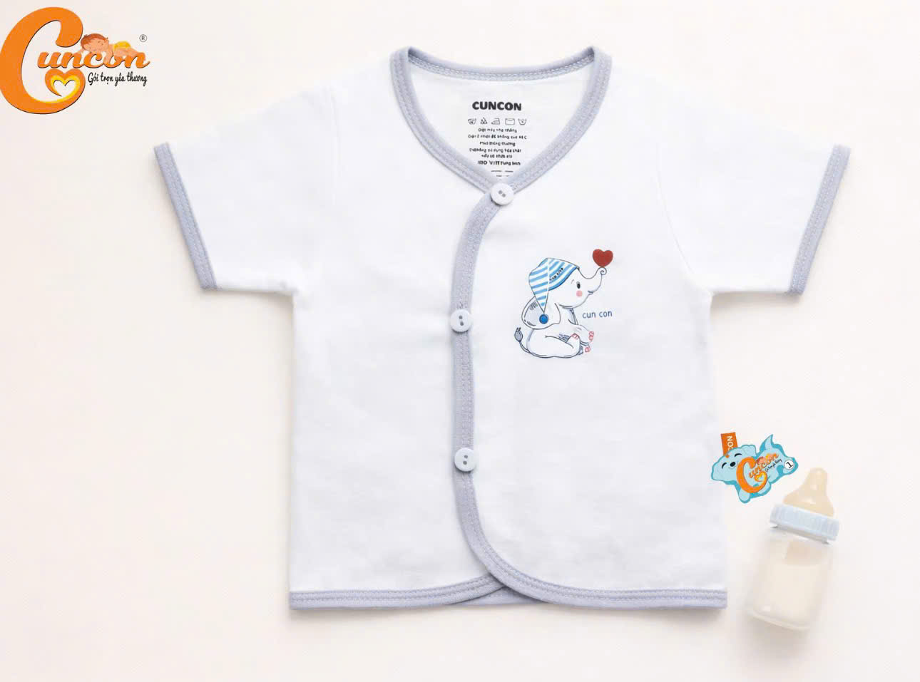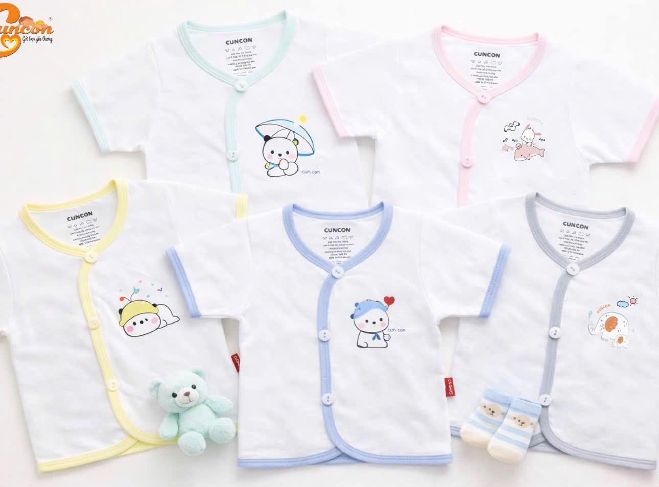 Áo sơ sinh cài cổ tim tay ngắn CUNCON (Nhiều họa tiết)